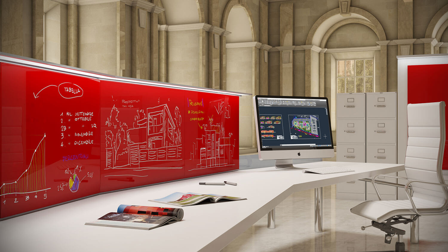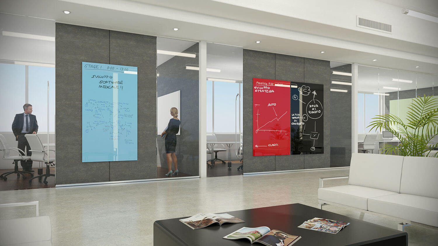 Moderne geometrie di colore dalle forme pulite e accattivanti le lavagne Magnetic Glass diventano spazi dove scrivere, disegnare, pianificare, progettare, appuntare, cancellare e ricominciare. La lavagna che aspettavi per arricchire con minimalismo e praticità il tuo ufficio. Scopri i vari colori e le diverse dimensioni e combinazioni per aggiungere un tocco di design e funzionalità ai tuoi spazi.