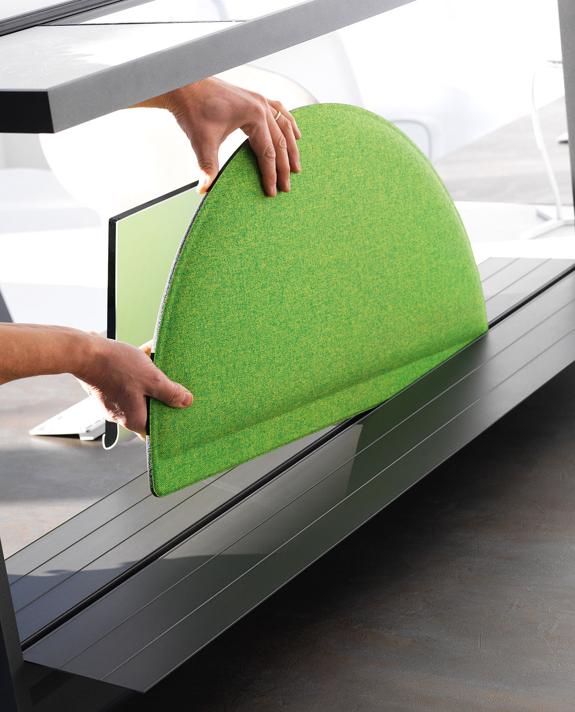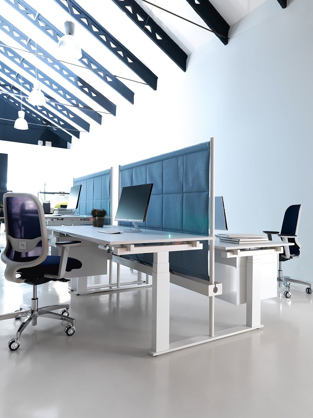 La nuova linea operativa di Tabula coniuga il design essenziale con un sistema ricco di tecnologie al servizio della persona. Le scrivanie sono regolabili in altezza sia elettricamente che meccanicamente. Composta da piani sliding, accessori e pannelli fonoassorbenti per creare un ambiente di lavoro pratico ed ergonomico.